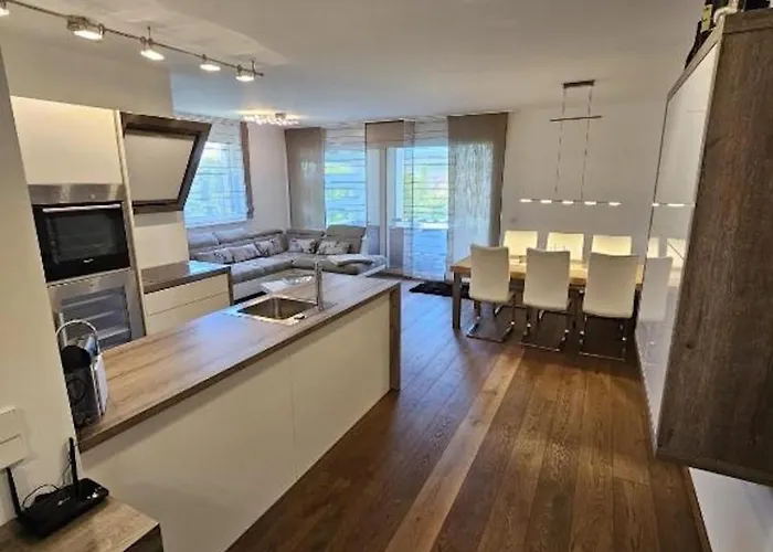 The beachfront Design Apartment Velden Am Woerthersee Mit Terrasse & Parkplatz is located around 5 km from the elevated peak "Pyramidenkogel Tower" and offers Wi-Fi for either business or leisure. The spacious apartment offers a terrace with views of the mountain.